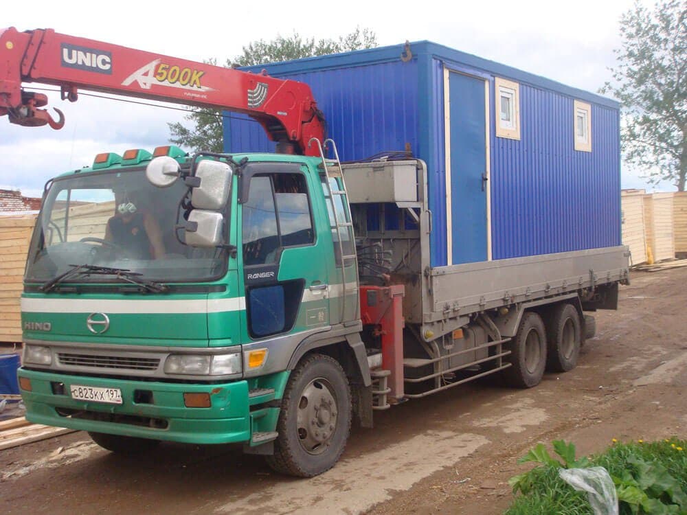Независимо от того, выполняется перевозка нестандартных бытовок или перевозка бытовки 6х3 манипулятором, водители компании разработают оптимальный маршрут доставки, чтобы исключить вероятность форс-мажорных обстоятельств в процессе перевозки. Поскольку конструкции отличаются довольно большими размерами, перевозка строительных бытовок манипулятором осуществляется с использованием прочных строп и надежных дополнительных перетяжек. Наша компания использует, если осуществляется перевозка бытовок краном манипулятором, исключительно качественные крепежи и фиксаторы, что позволяет гарантировать целостность.